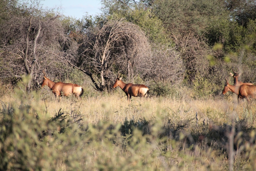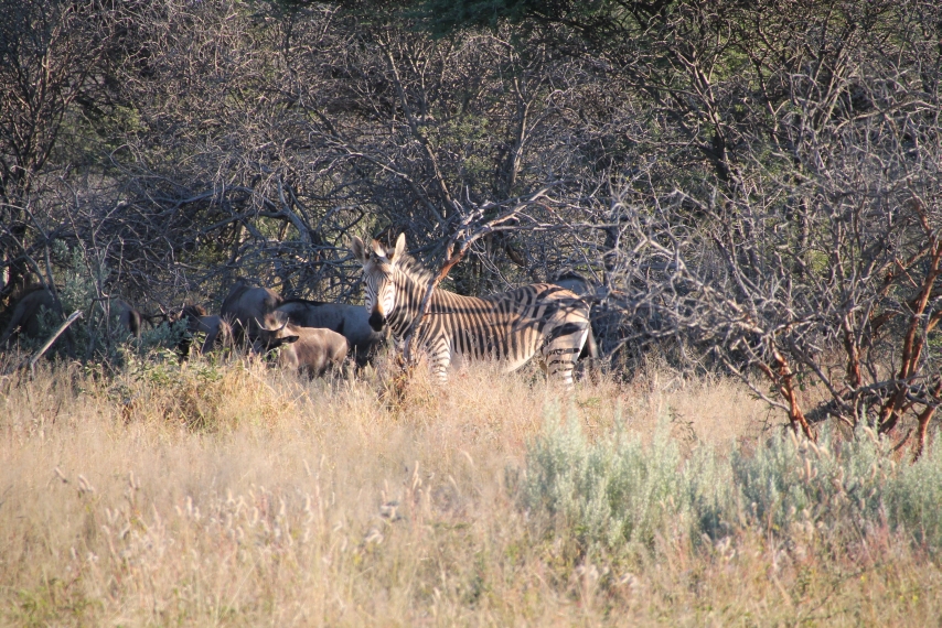 Um 16 Uhr sind wir los zu einer sundowner Fahrt über die Farm. Es gab doch einiges an Tieren zu sehen. U.a. Oryx-Antilopen, Gnus, Strauße, red heartebest, Zebras und ein paar Hasen.